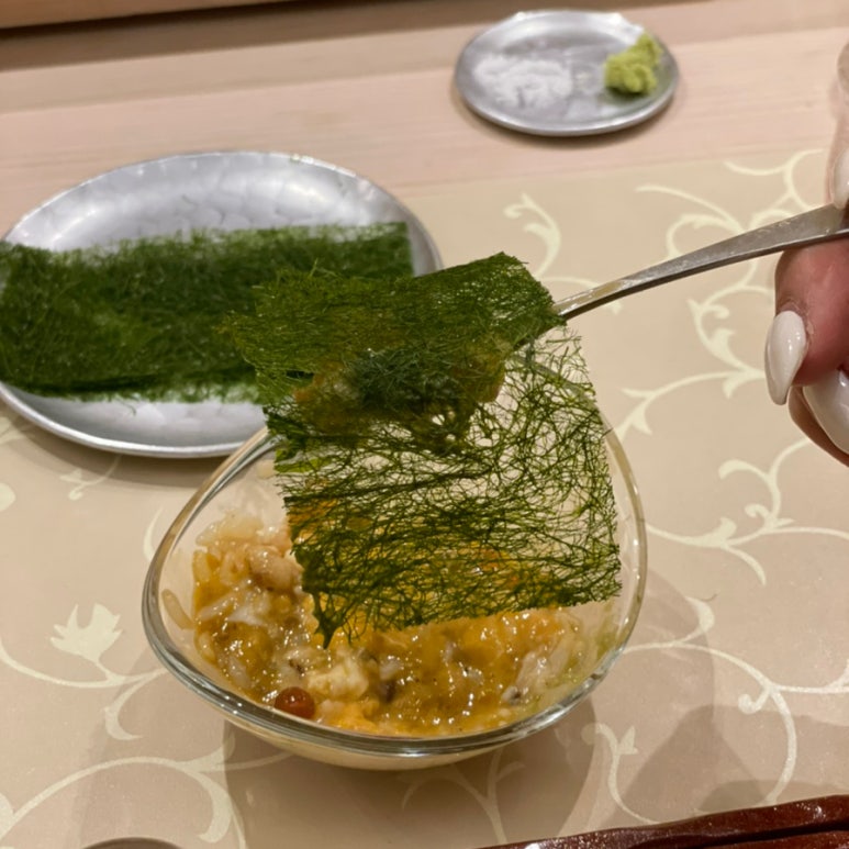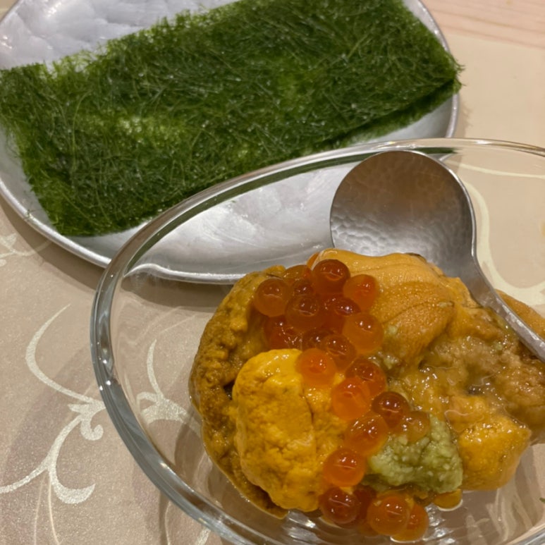 맛있는 우니와 이꾸라를 감태에 싸 먹으면 여기가 바로 천국