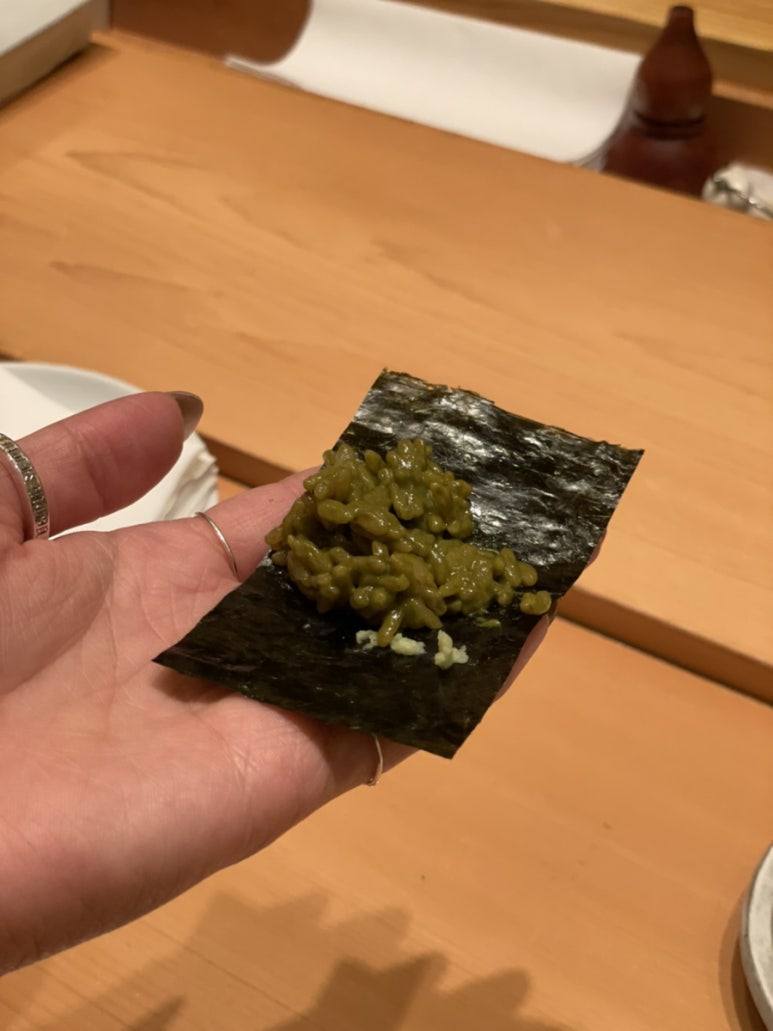 한 점은 와사비 올려서 먹고, 한점은 게우소스에 푸욱 찍어서 먹은 결과