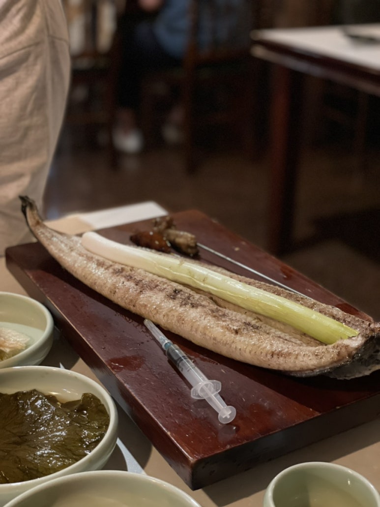 주사기 안에 들어있는 게 장어 액기스를 서비스로 소주나 맥주에 넣어서 준다고 하셨는데